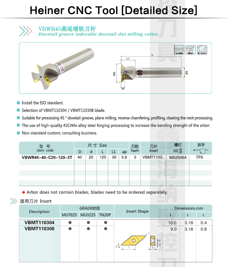 VBWR45 Dovetail groove milling cutter bar