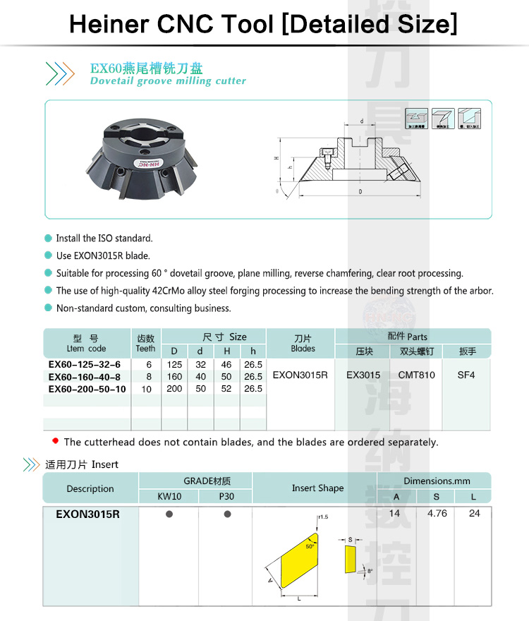 Ex60 dovetail groove milling cutter head