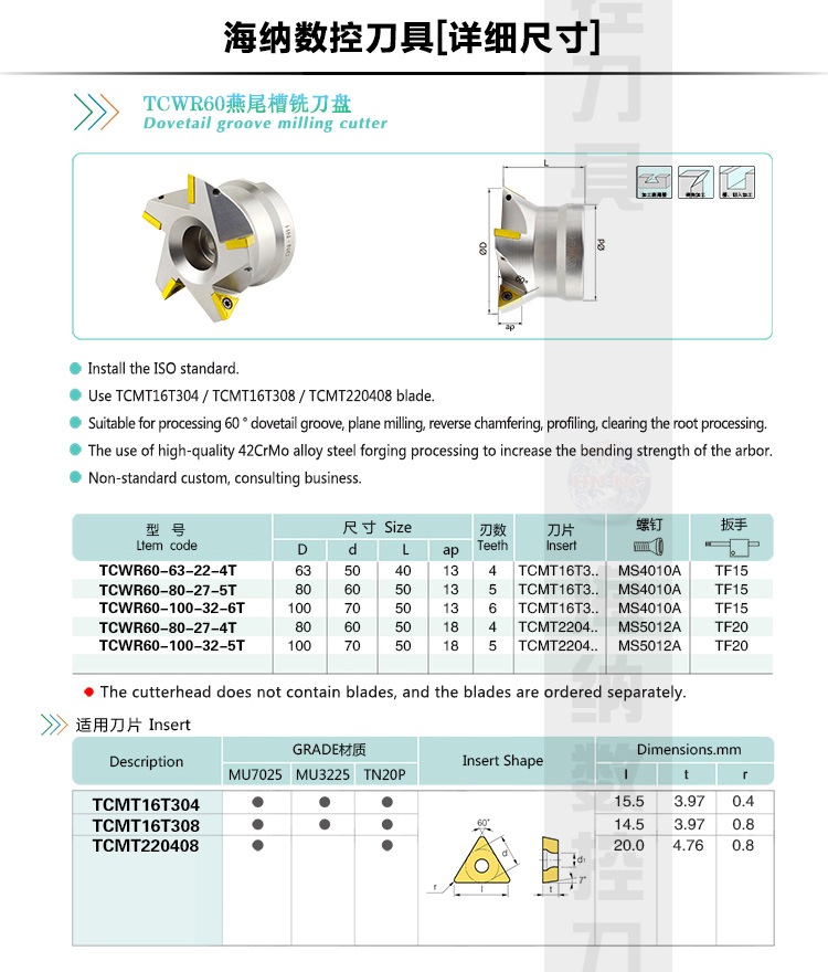 Tcwr60 dovetail groove milling cutter head